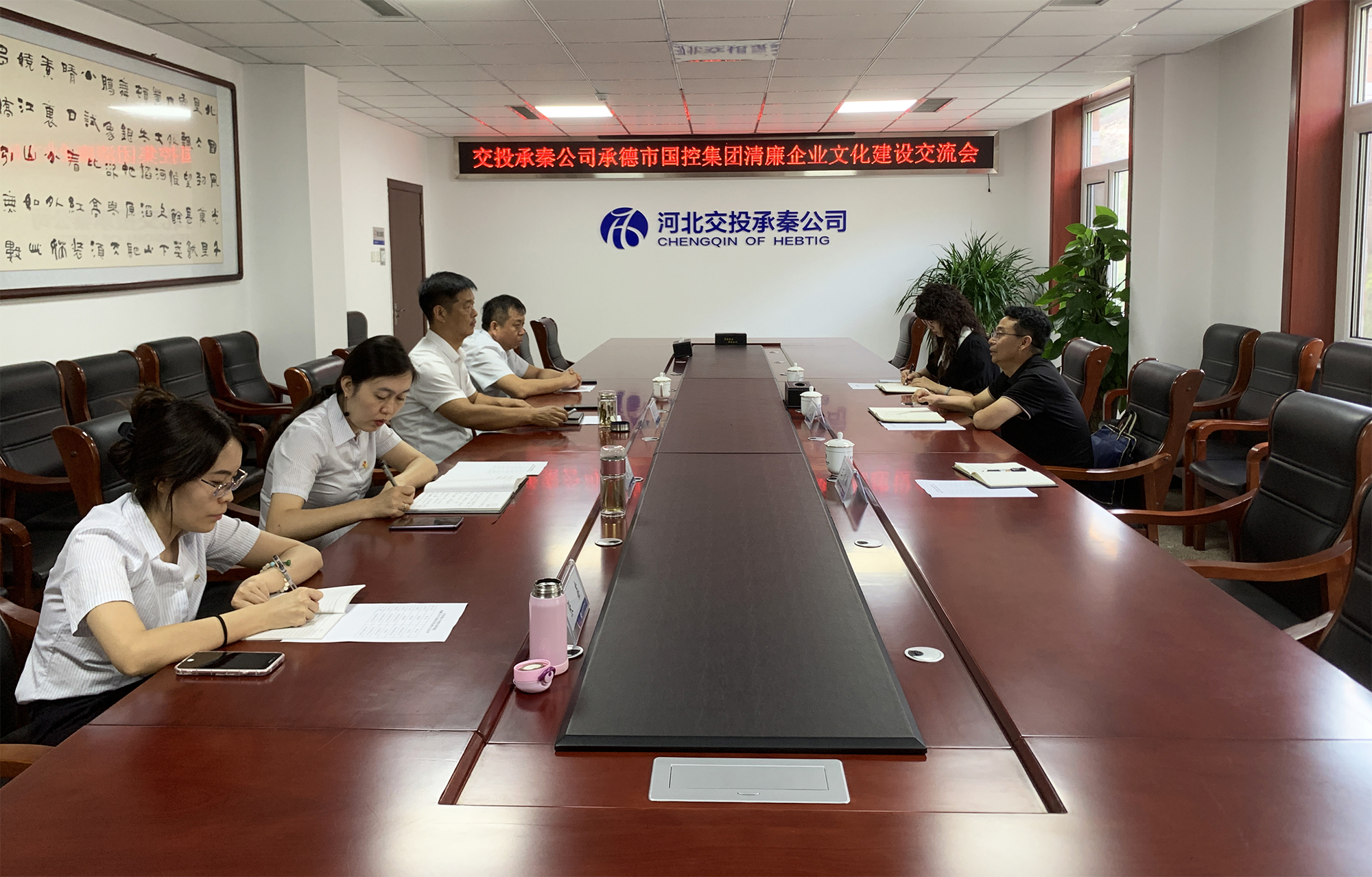 2023年6月26日,米兰milan(中国)党委委员、纪委书记房宝轩,集团纪检监察室主任王雪聪、纪检监察室副主任杨柳一行前往河北交投承秦公司开展清廉企业文化联合共建活动。