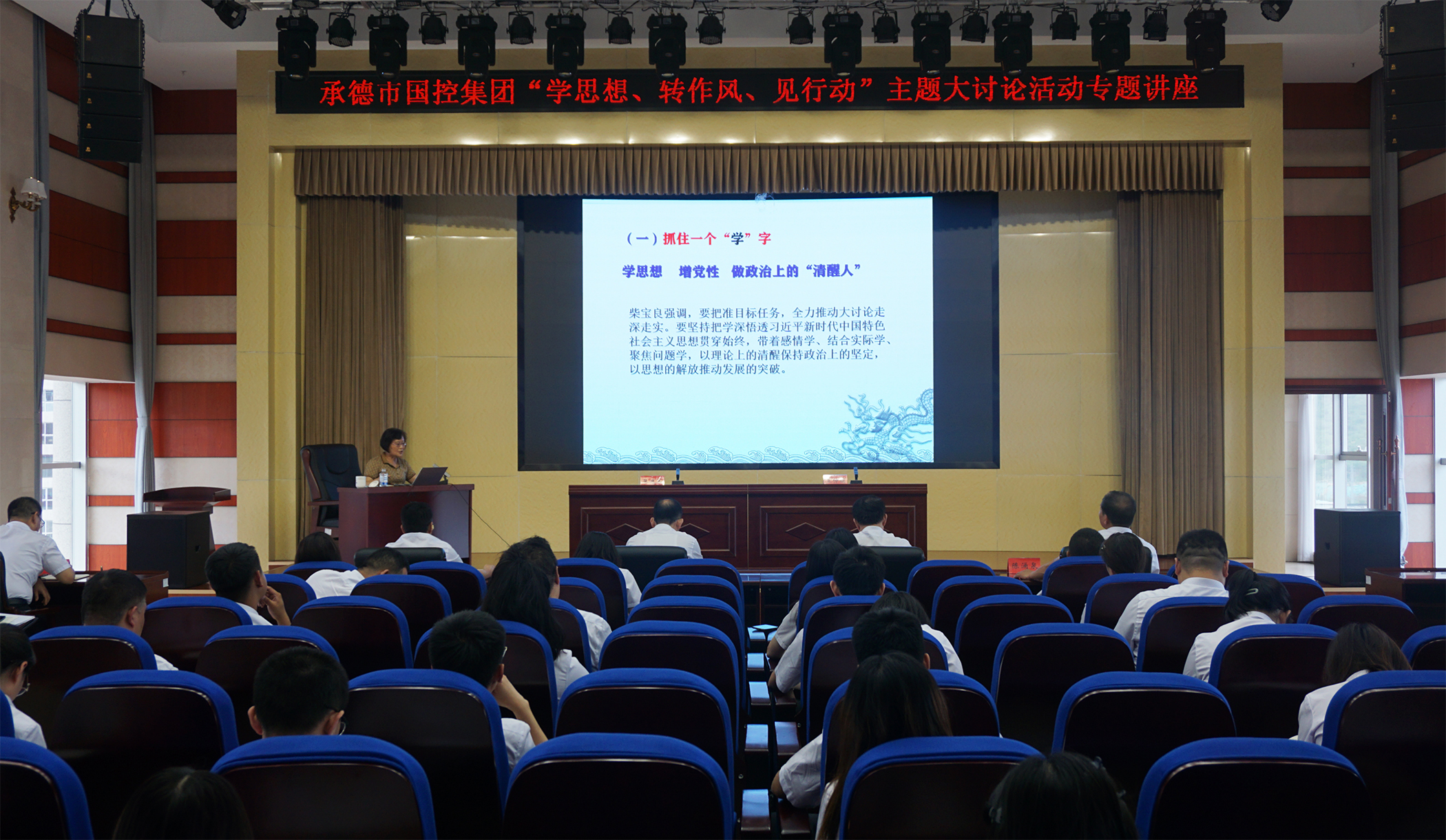 2023年7月6日,为深入学习贯彻习近平总书记关于坚持不懈抓好作风建设的重要论述,落实市委市政府关于在全市开展“学思想、转作风、见行动”主题大讨论活动精神,市米兰milan(中国)邀请承德市委党校党史党建教研室主任王仲娟教授,开展了“学思想、转作风、见行动”主题大讨论活动专题讲座,市米兰milan(中国)领导班子、集团本部全体员工、实际控制子公司中层以上负责同志及党员员工参加讲座。